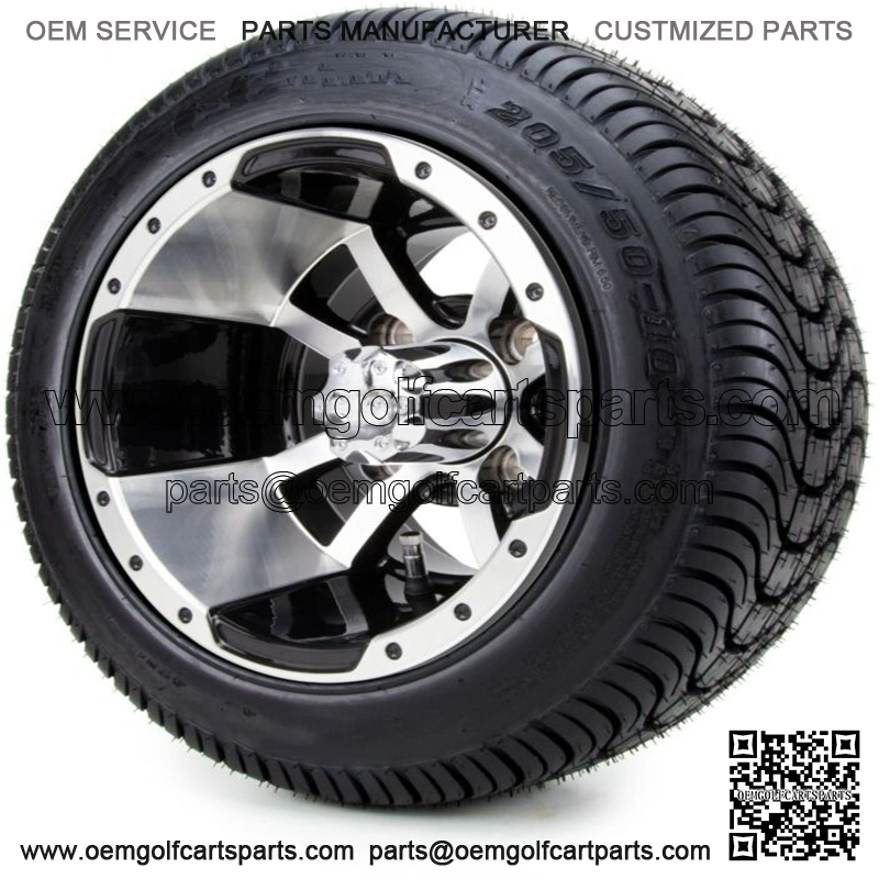 10″ Machined & Black Golf Cart Wheels & Tires (205-50-10) Set of 4