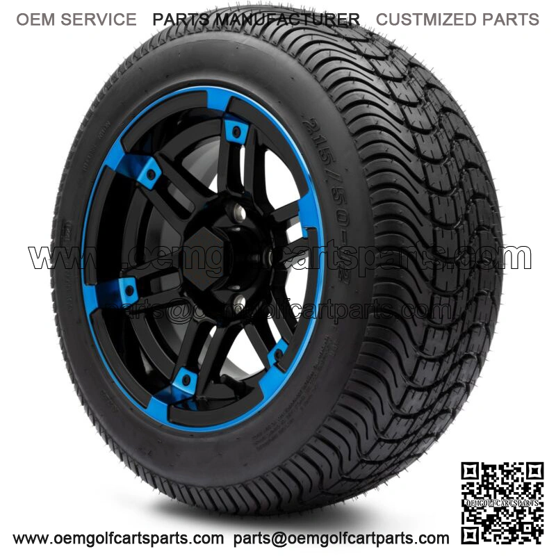 12″ Aftershock Blue and Black Golf Cart Wheels and Tires (215-50-12) – Set of 4