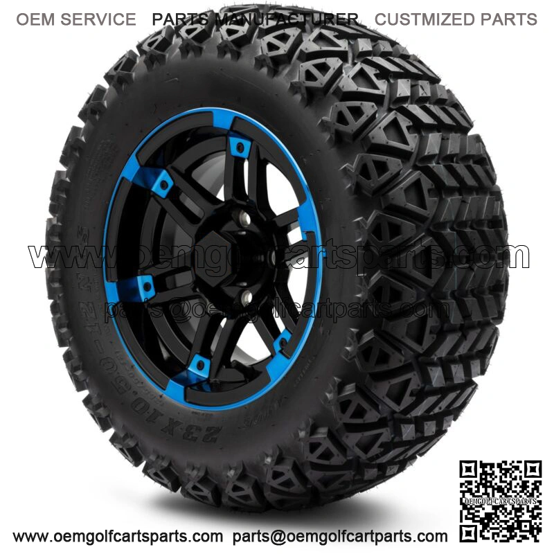 12″ Aftershock Blue and Black Golf Cart Wheels and Tires (23×10.50-12) Set of 4
