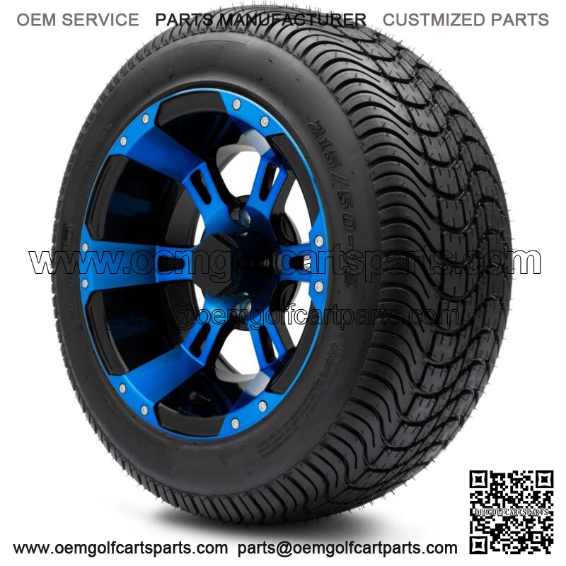12″ Ambush Blue and Black Golf Cart Wheels and Tires (215-50-12) – Set of 4