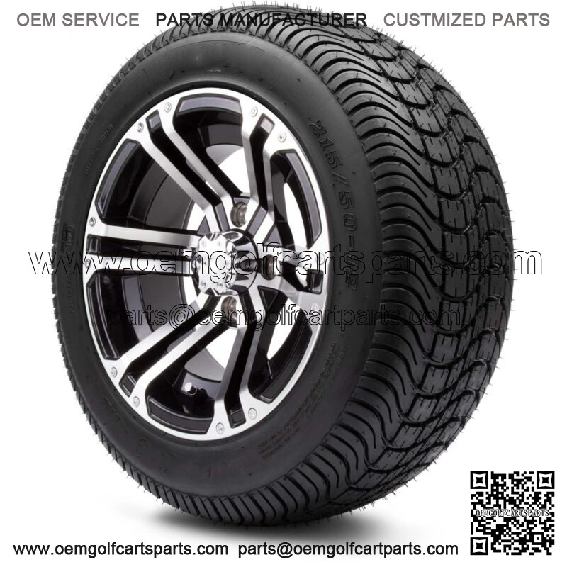 12″ Enforcer Machined and Black Golf Cart Wheels and Tires (215-50-12) Set of 4