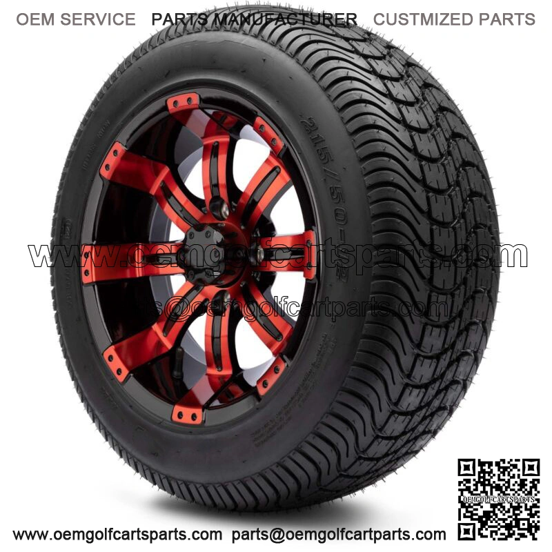 12″ Red and Black Golf Cart Wheels and Tires (215-50-12) – Set of 4