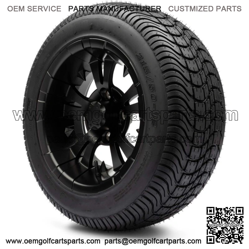 12″ Vampire Matte Black Golf Cart Wheels and Tires (215-50-12) Set of 4