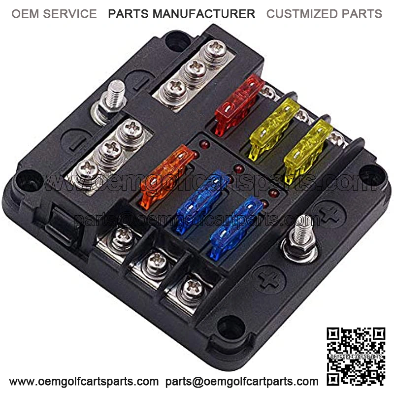 12 Volt Fuse Block, Waterproof Boat Fuse Panel with LED Warning Indicator Damp-Proof Cover – 6 Circuits with Negative Bus Fuse Box for Car Marine RV Truck DC 12-24V, Fuses Included