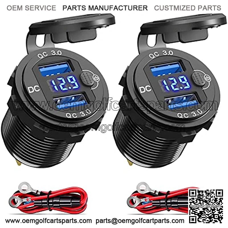 12V USB Outlet 2 Pack, Dual Quick Charge 3.0 12V Socket USB Charger with LED Voltmeter and Power Switch, Waterproof Aluminum Car Charger Adapter for RV Marine Motorcycle Truck Golf Cart RV etc.