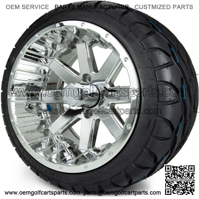 14″ Assault Chrome Golf Cart Wheels and Radial Tires (205/40-14)