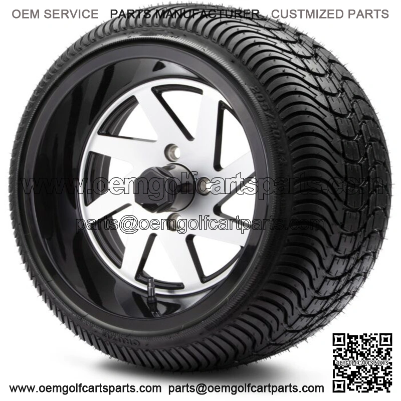 14″ Tempest Black/Machined Golf Cart Wheels on 205/30-14 (18″) Tires-Set of 4