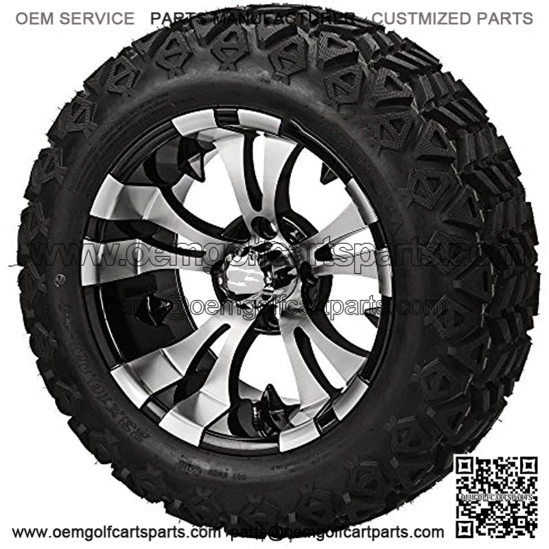 We wrap our mean Machined/ Black VAMPIRE golf cart wheels in high-performing 23×10-14″ DOT Approved All Terrain Golf Cart tires to create the ultimate 14″ Wheel and Tire combo that will allow you to adventure with no limits!