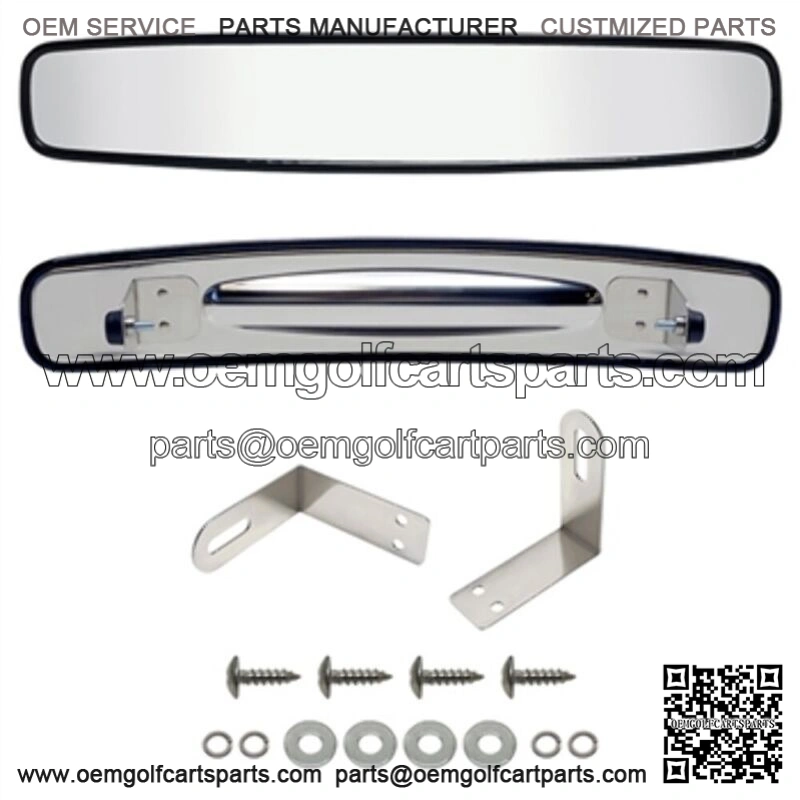 Golf cart rear view mirror features convex design for a full 180 degree view. Great alternative to the 5 panel wink mirrors. Equally functional on your UTV or for marine applications. Stainless steel backing and hardware ensures great durability and solid mount. Much less jiggle than typical golf cart mirrors. Measures 3″ H X 17″ W X 3″ D ACC-1020 Universal Convex Mirror on an EZGO TXT with an Extended Top from Garage on Vimeo .