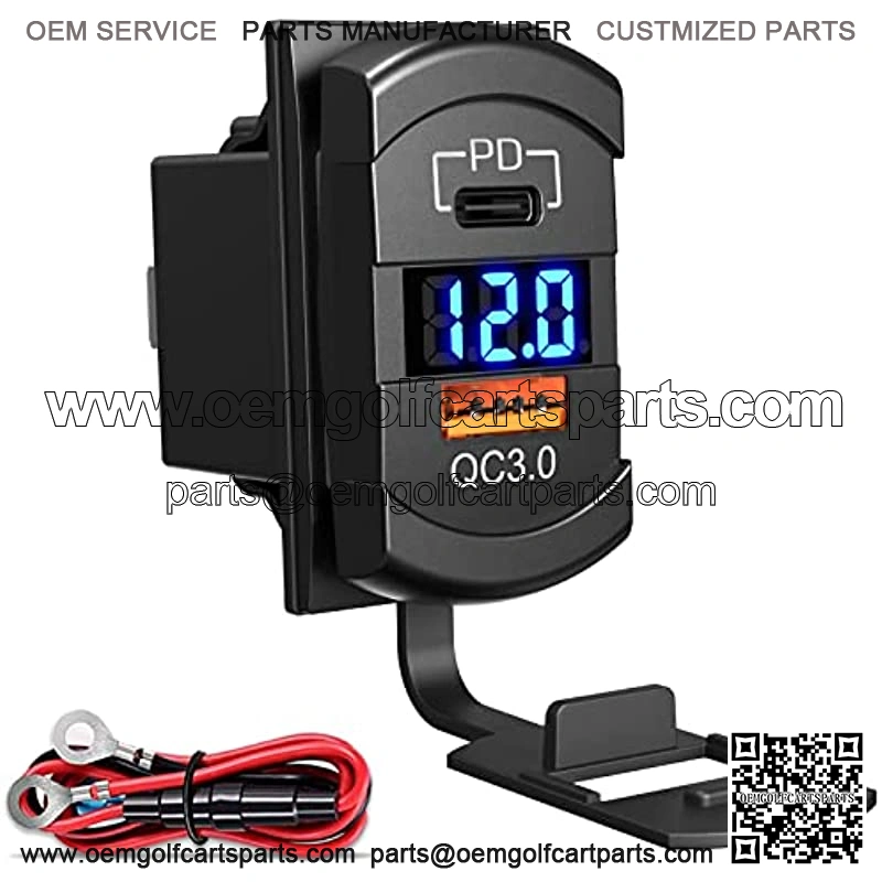 [2022 New] USB C Car Charger Socket Rocker Style Switch Replacement, Dual PD and QC3.0 12V/24V Panel Mount USB Outlet with LED Voltmeter for Boat Marine Truck Bus Off Road Vehicles RV Golf Cart, etc.