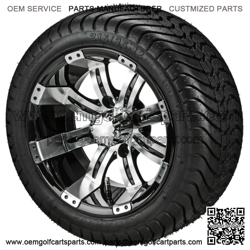 4 Golf Cart 215/35-12 Radial Tires on 12×7 Black/Machined Wheels