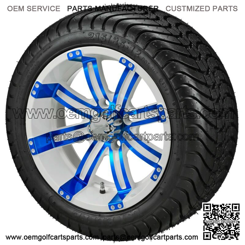 4 Golf Cart 215/35-12 Radial Tires on 12×7 White/Blue Wheels