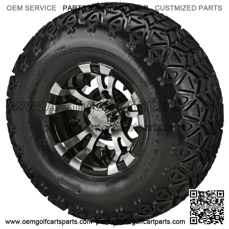 4 Golf Cart 22×11-10 All-Terrain Tires on 10×7 Black/Machined Vampire Wheels