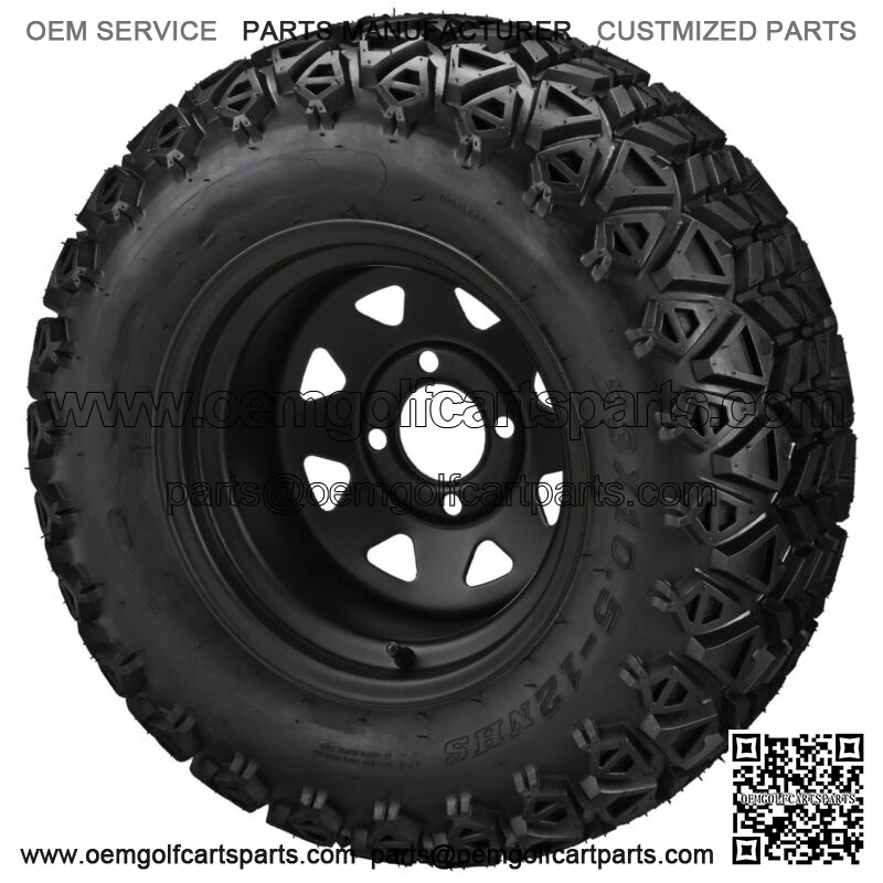 4 Golf Cart 23×10.50-12 All-Terrain Tires On 12×7 8 Spoke Black Steel Wheels