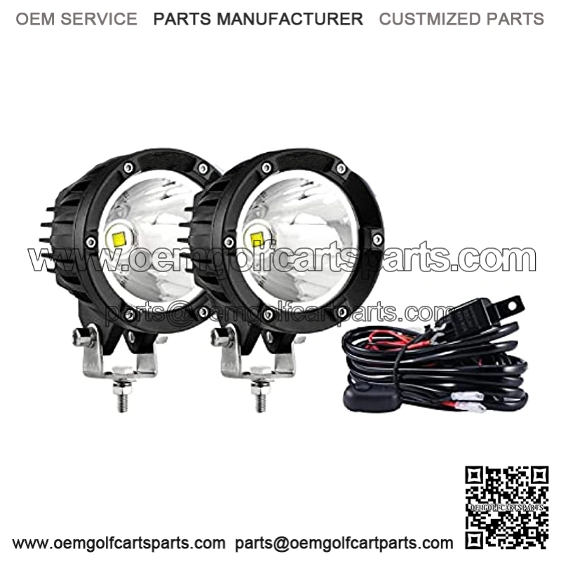 4In 72W Round Led Offroad Light, 2PCS 7200LM Spot Light Pod with Wiring Harness Kit Super Bright Led Pod Lights White Round LED Pods for Truck Jeep Motorcycle SUV ATV UTV Wrangler