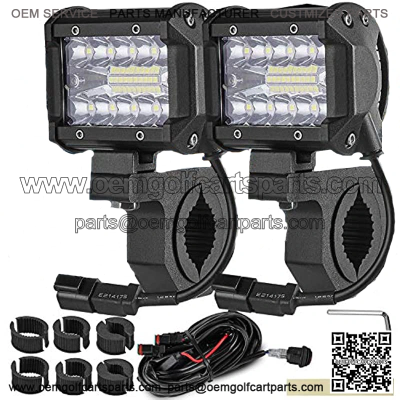 2 x 4Inch LED Triple-Row Spot/Flood/Combo Work Light Pods; 2 x Offroad Led Light Mounting Brackets Clamp Kit 1″/1.5″/1.75″/2″; 1 x 10ft Wiring Harness Kit Switch with DT Connector;2 x 2?? Doubled Sided Tape (for 2″ tubes); 1x Set of Tool & Screw; 2x Manuel;