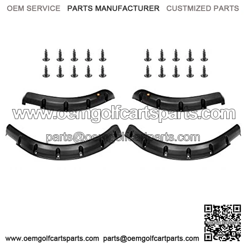 Accessories upgrade:golf cart trim fender flare set use STAINLESS STEEL SCREWS & NUTS it is strength to handle being installed without breaking, for a more secure and more secure look.NOTE: There are a reflector spot on each Fender Flares, subject to the actual received! golf cart trim fender flare set made made of durable injection-molded black plastic with textured finish is more pliable too/ less ridged to avoid breakage Fender flares club car DS is set of 4, 2 front and 2 rear fender flares,keep water and rocks from being thrown at operator &passengers, and flares add a new look to your golf cart Easy and quick installation, drilling is required on the cart.All mounting stainless steel hardware included strives to provide better services and high-quality products. More and more golf cart parts and accessories for EZGO, Yamaha, Club Car will be find in 10L0L!