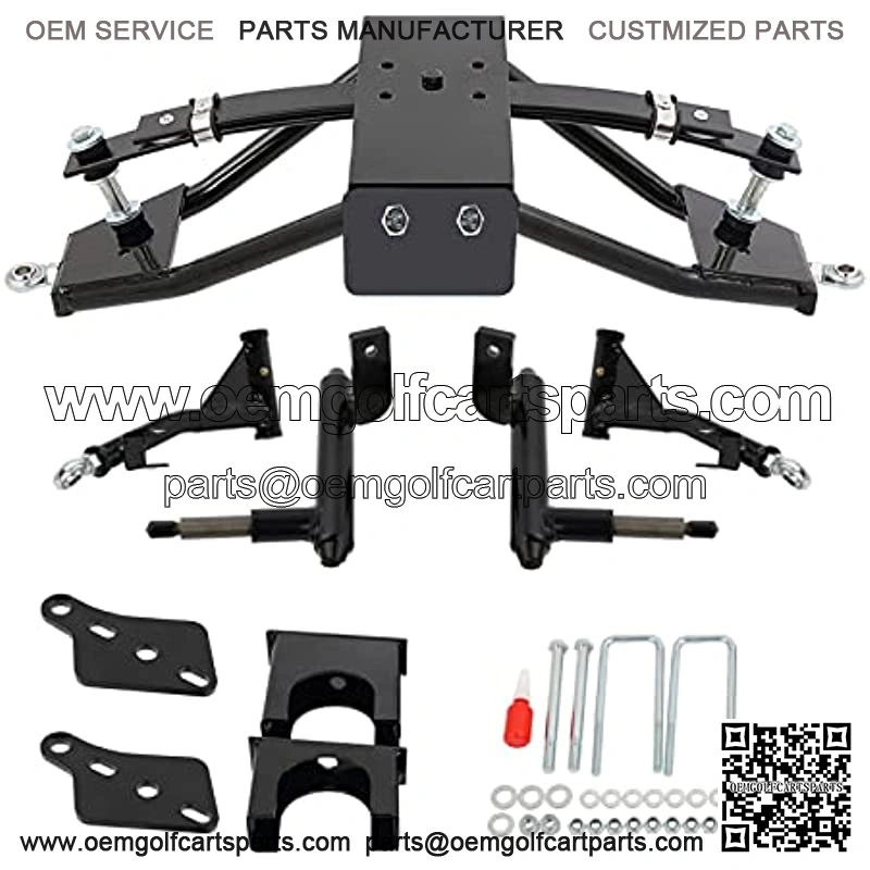 This Heavy Duty Double A-Arm Lift Kit was made to give a smooth riding 6″ lift to electric and gas models (all years) golf carts.