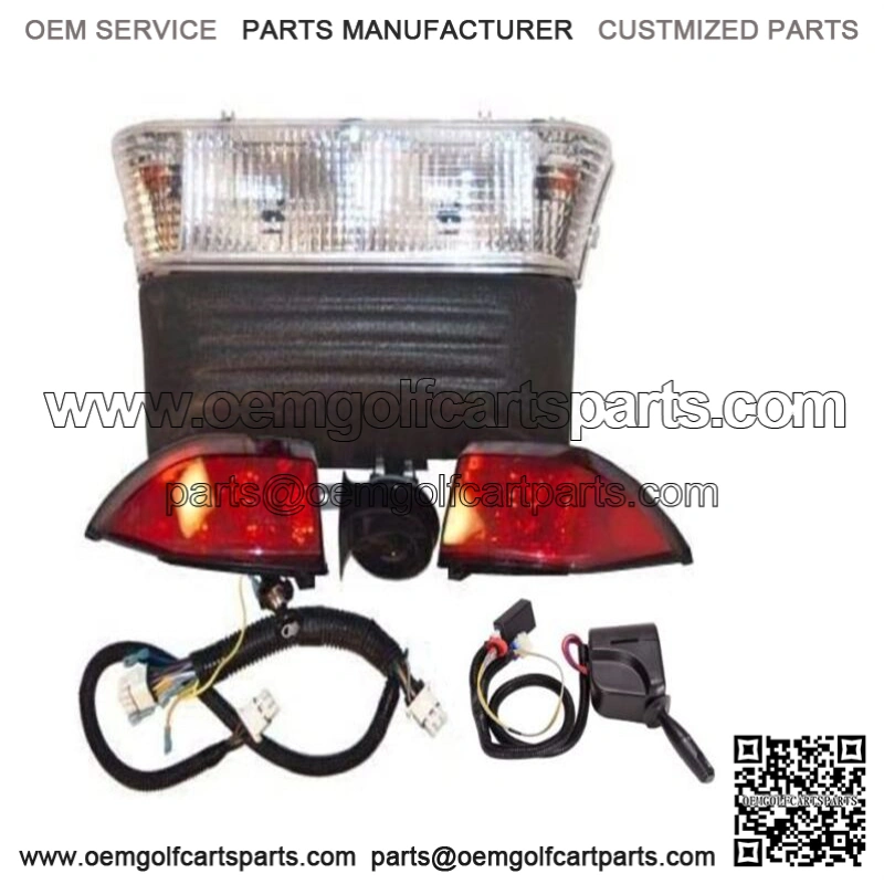 . Includes (1) Brand new high quality deluxe light kit . Fits Club Car Precedent Golf Carts 2004-2008.5 . Includes 2 tail lights w/ adhesive bezels, 1 halogen headlight bar, wiring harness, on/off switch (push/pull), horn and turn signal switch . 2008 and newer Precedent carts will require an additional wiring harness (NOT INCLUDED) . 48 VOLT systems will require voltage reducer (NOT INCLUDED) . For electric golf carts only** .
