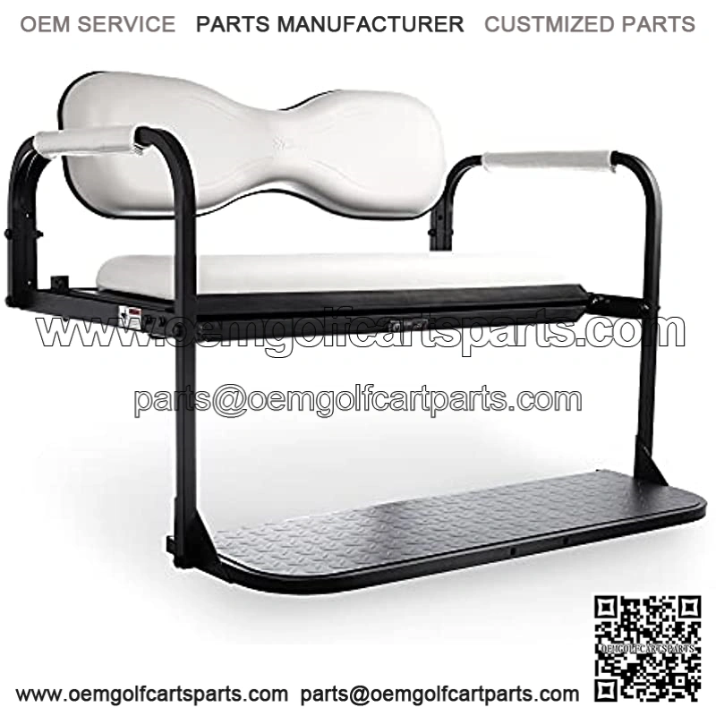 [FITS ALL EZGO TXT 1995-Up and TXT48 GOLF CARTS] – Features a simple, bolt-on design allowing for easy installation with basic hand tools. The Flip4 also includes a full-color, detailed instruction manual. You can also check out our easy-to-follow installation videos for additional information. [OEM COLOR MATCHING CONTOURED SEAT CUSHIONS & REMOVABLE ARMRESTS COVERS] – Includes marine grade vinyl, ergonomically designed seat cushions available in all OEM color options. The Flip4 also includes removable matching armrest covers for added style and comfort. [CONVENIENT FOLD DOWN CARGO BED] – Easily fold down the rear seats using the convenient cargo bed grab handle. The Flip4 includes a durable high-density polyethylene diamond textured cargo bed and 360-degree bed rail ensuring your cargo is always safe and secure. [FEATURE RICH] – The Flip4 is one of the most feature-rich rear seat kits on the market and includes integrated seat belt tabs alleviating the need for an aftermarket rear seat belt bar, a thermo-molded backseat cap covering the unsightly back side of the rear seat, footrest mounting holes for accessories and a protective matte black powder coating.