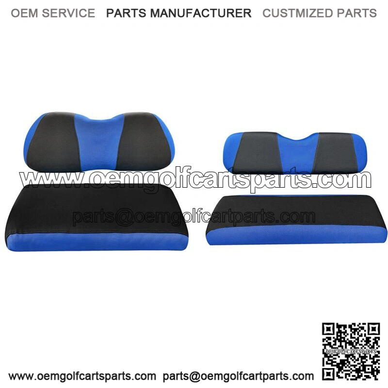 Front and Rear Golf Cart Seat Cover Set for Club Car DS EZGO RXV TXT Blue BlackWarm reminder: Only fit for 2 passenger Club Car DS, EZGO RXV TXT Golf Carts with Rear seat much smaller than front one. Thank you!- S size golf cart front seat cover : 39.76inch(L) * 19.68inch(W)*3.94inch(H); Back cover: 36.6inch(L) * 9.5inch (W)* 3.74inch(H)- XS size seat cover for rear seat: Seat cover: 37.5inch(L) * 13.5inch(W)*3.7inch(H); Back cover: 35inch(L) * 9.5inch (W)* 3inch(H)- Golf cart seat cover Made with breathable washable polyester mesh cloth, keeps the seats cool in the summer heat and warm in the winter;- Golf cart front rear seat cover set extends the life of older or damaged seats, keeps your seat clean, free of dirt, dust, scratches and spills;- In Two-Tone ( Blue+Black) which looks very stylish, renew your golf cart seat;- Easy to Install and Stay Dry, Toolleadjustable straps and retractable buckle design help you install easily and remove in minutes;- Easy to clean, just throw it in the washing machine and air dry, folds easily for packing, lightweight;- Best Birthday Gift / Christmas gift for DEDICATED GOLFER,GOLF FANS,MEN,FATHER,BOYFRIEND.- Package include: 1x seat cover set for front seat+ 1 x seat cover set for rear seat.