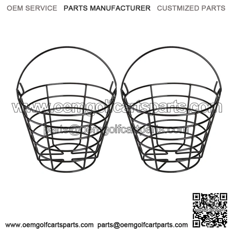 Can contain 50pcs regular size golf balls-One Basket.- 2 Black golf buckets can be stacked together to minimize storage space.- Metal golf ball basket, soft PVC material wrapped, anti-skid and anti-rust. Durable for long time use.- There’s a handle for the golf ball bucket, very convenient to hold and easy to carry. Great golf training tool for individuals or clubs.- This golf cart part accessories great for schools, golf courses, country clubs, driving ranges, and even your own backyard.- Package includes: 2pcs golf ball basket.