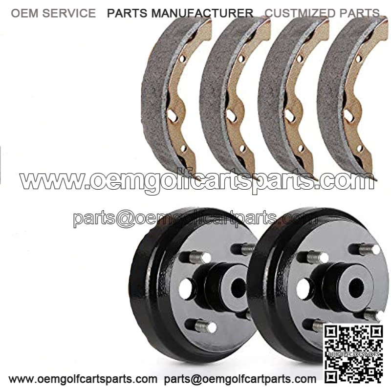 Golf Cart Brake Maintenance kit to fix your EZGO ‘s brake job ; Complete Brake Shoe Set of 4 (Replaces OEM Part Number: 70794G01, 70795G01, 27943G01,27945G01); Set of 2 Rear brake drums with 4 lug studs and a splined center hub,Fits 1982-Current Electric & 1982-1993 2-Cycle Gas E-Z-GO Models (Replace EZGO OEM# 19186G1); Factory oem replacement,meet or even exceed the manufacturer’s original equipment specifications; Kindly Note: Please carefully check your own drum’s Size&OEM Part NO, our drum center hole diameter is 0.8″ with 24-tooth spline,if you received wrong (big)size drums,pls directly contact us to replace.