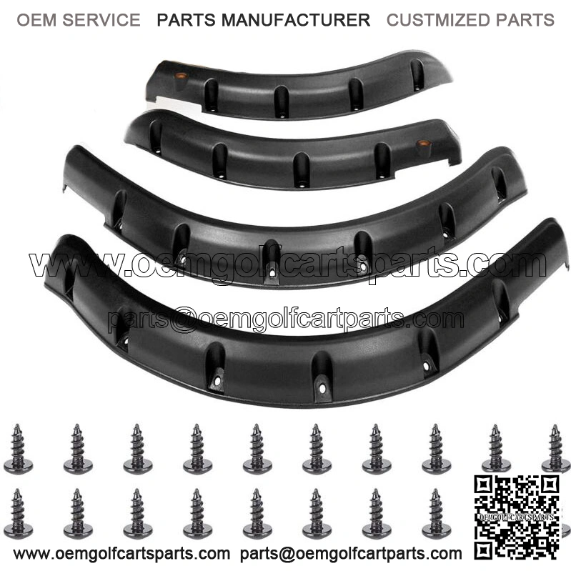 Golf Cart Fender Flares Front and Rear For Club Car DS 1993 up , Set of 4- Golf cart fender flares for Club Car DS 1993-up gas & electric models, set of 4, including 2 front and 2 rear fender flares;- Club Car DS fender made of durable injection-molded black plastic with textured finish, comes with metal hardware, give your cart an aggressive, off-road look;- golf cart fender flares protects passengers from dirt, water, mud, rocks and other debris that can be kicked up by tires;- Round amber reflectors on front fender flares for enhanced safety, mini marker lights(not included) can be added inside the reflectors;- Easy and quick installation, drilling is required on the golf cart. If you have aftermarket rocker panels, you may need to modify these to fit your cart;- Package: set of 4, including 2 front and 2 rear fender flares.