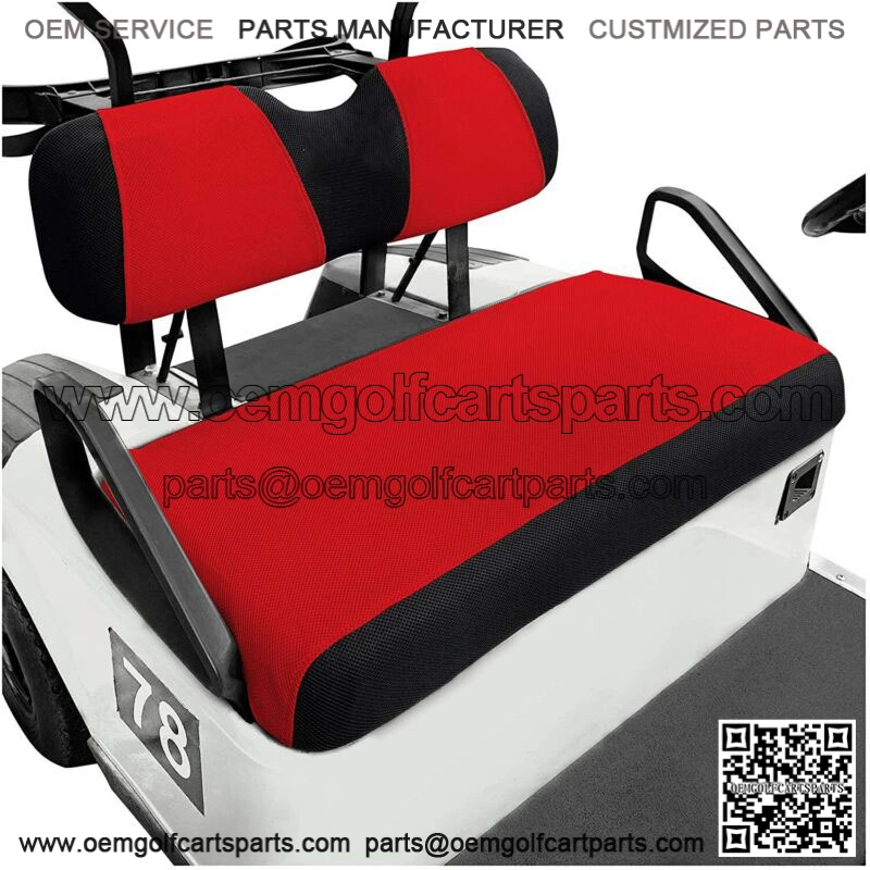 Golf Cart Front Seat Cover Set For EZGO RXV TXT & Club Car DS Red Black Color-S- Golf cart seat perfect fit for EZGO TXT RXV & Club Car DS, Not for Club Car Precedent and Yamaha;- Golf cart size information: Seat cover: 39.76inch(L) * 19.68inch(W)*3.94inch(H), Back cover: 36.6inch(L) * 9.5inch (W)* 3.74inch(H);- Made with breathable washable polyester mesh cloth, keeps the seats cool in the summer heat and warm in the winter;- Golf cart seat cover extends the life of older or damaged seats, keeps your seat clean, free of dirt, dust, scratches and spills;- In Two-Tone ( Red+Black) which looks very stylish, renew your golf cart seat;- Easy to Install and Stay Dry, Toolleadjustable straps and retractable buckle design help you install easily and remove in minutes;- Easy to clean, just throw it in the washing machine and air dry, folds easily for packing, lightweight;- Best Gift for DEDICATED GOLFER,GOLF FANS,MEN,FATHER,BOYFRIEND.