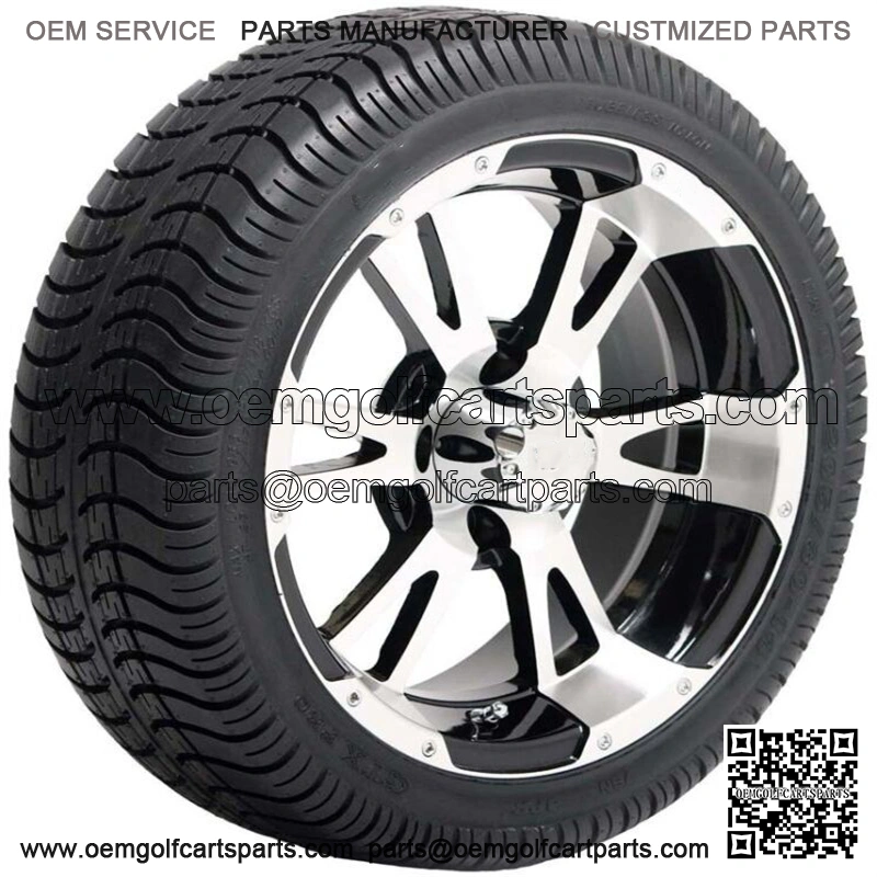 14″ Tempest Black/Machined Golf Cart Wheels on 205/30-14 (18″) Tires-Set of 4