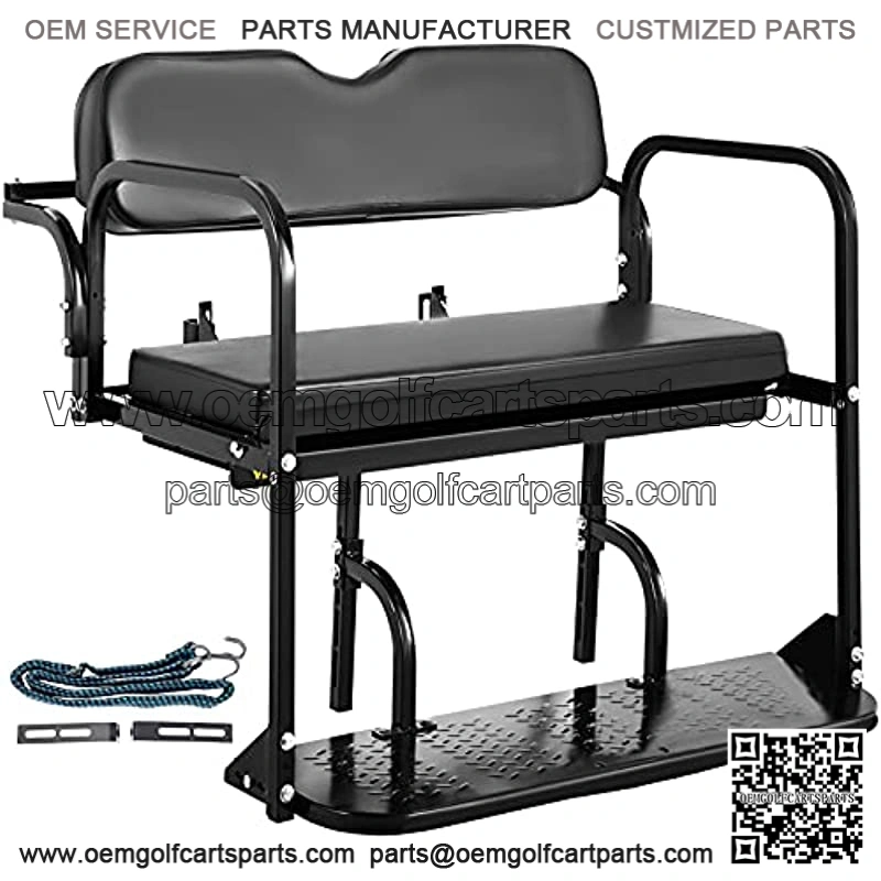 Advanced Details Conforming to ergonomic principles, our golf cart back seat is designed with a contoured cushion and textured footplate. Universal mounting holes for grab bar or trailer hitch and elastic strap allow you to customize it based on needs.