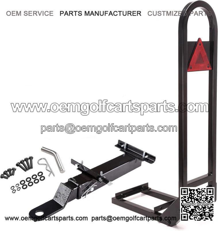 Golf Cart Back Rear Seat Safety Grab Bar With Trailer Hitch for EZGO Club Car Yamaha- universal golf cart rear seat safety grab bar with trailer hitch fits EZGO, Club Car and Yamaha. Gives added stability when getting on and off the rear seat. A good additional for a golf cart rear seat.-If your family have older parents or younger children, this rear seat grab bar is your best choice. It has added rear seat passengers much safety while getting on and off the rear seat.- U-shape design makes it more convenient for rear seat passengers to get in and off the car and grab while sitting at the rear seat, increases the safety of the passengers.- Safety grab made of 1.7mm thick steel pipe, upgrade heavy-duty corner brace gives added stability, does not affect the flip open of the rear seat after installation.- Trailer hitch with receiver, hitch pin and all necessary mounting, turn your golf cart into a utility vehicle.With safety triangle to increase the safety of night driving.- Due to variations of aftermarket rear seat kits some drilling may be required for exact fit.-Package included: 1 set rear seat safety grab, 1 set rear seat trailer hitch