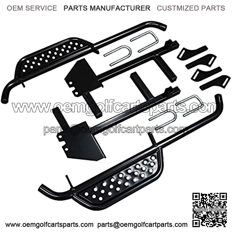 Climbing in and out of your golf cart has never been easier than with the Golf Cart Side Board Nerf Bar kit. This kit includes a set of Driver and Passenger Nerf Bars for the Club Car DS (2004 to present, Gas and Electric) and all necessary mounting hardware and instructions. It is engineered with durable, high quality steel, machine welded for long-lasting strength, and complemented with black weather-resistant powder coating. Easy DIY installation takes up to 1 hour to finish, plug and play using the included hardware and step-by-step instructions. A great upgrade to both the looks and functionality of your cart and a perfect complement for golf carts with lift kits.Note – Comes with the adapter bracket kit designed to fit on all Club Car DS Golf Carts.Compatible with 2004-Up Club Car DS gas & electric golf carts.