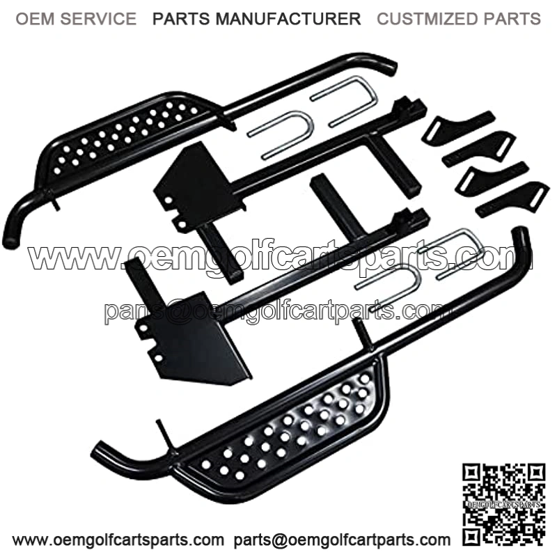 Climbing in and out of your golf cart has never been easier than with the Golf Cart Side Board Nerf Bar kit. This kit includes a set of Driver and Passenger Nerf Bars for the Club Car DS (2004 to present, Gas and Electric) and all necessary mounting hardware and instructions. It is engineered with durable, high quality steel, machine welded for long-lasting strength, and complemented with black weather-resistant powder coating. Easy DIY installation takes up to 1 hour to finish, plug and play using the included hardware and step-by-step instructions. A great upgrade to both the looks and functionality of your cart and a perfect complement for golf carts with lift kits.Note – Comes with the adapter bracket kit designed to fit on all Club Car DS Golf Carts.Compatible with 2004-Up Club Car DS gas & electric golf carts.