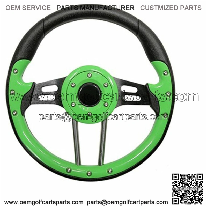 Golf Cart Steering Wheel- Lime Green Grip with Black Spokes- 13″ Diameter