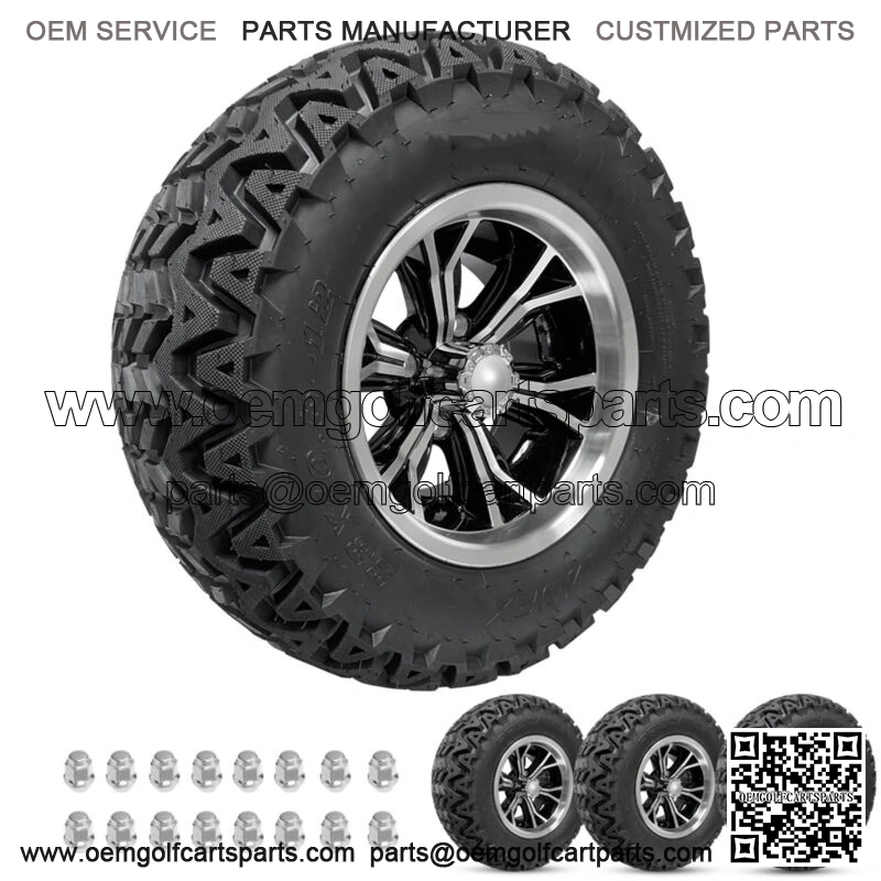 Golf Cart Wheels 12″ Phenom Machine/Black on 23″ Predator Tires Carts (4)