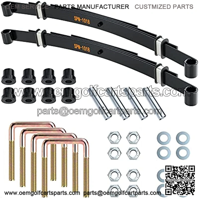 Heavy Duty 4 Leaf Rear Spring Kit for EZGO TXT Electric 1994-up & Gas 1994-2009 Golf Cart, Includes Bushings, Sleeves, U Bolts, OEM: 70506-G01 74135-G01 74207-G01 74207-G02 74207-G03