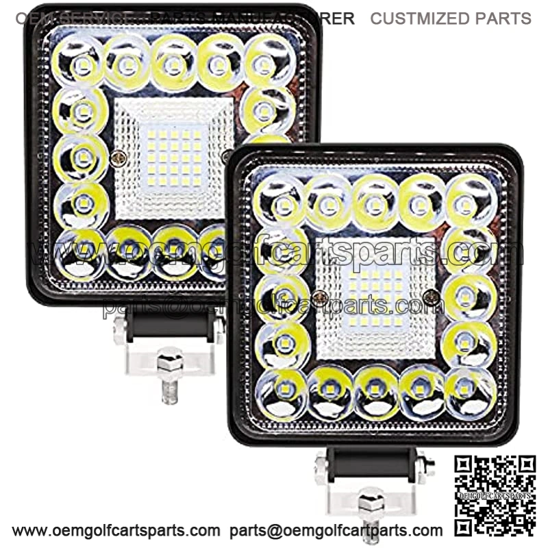 ??PERFECT BEAM PATTERN??4.5 Inch Square LED driving light adopting deep cup reflector design and wide voltage design, 9V-36V, with 123 watts and 12,300 lumens output power, including 82 (41 * 2 pack) advanced high-quality LED chips, LED pods emit 6000K cool white light, bringing a good visual experience, turn night into daylight.