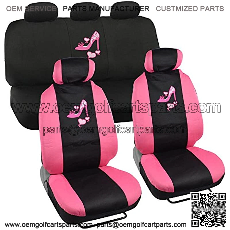 Instantly customize your car, truck, van, or SUV with this brand new bright “Pink Shoe” design accessories car interior set. Installation is simple, no tools required. Seat covers fit all standard bucket seat. Double stitched seams for lasting durability.