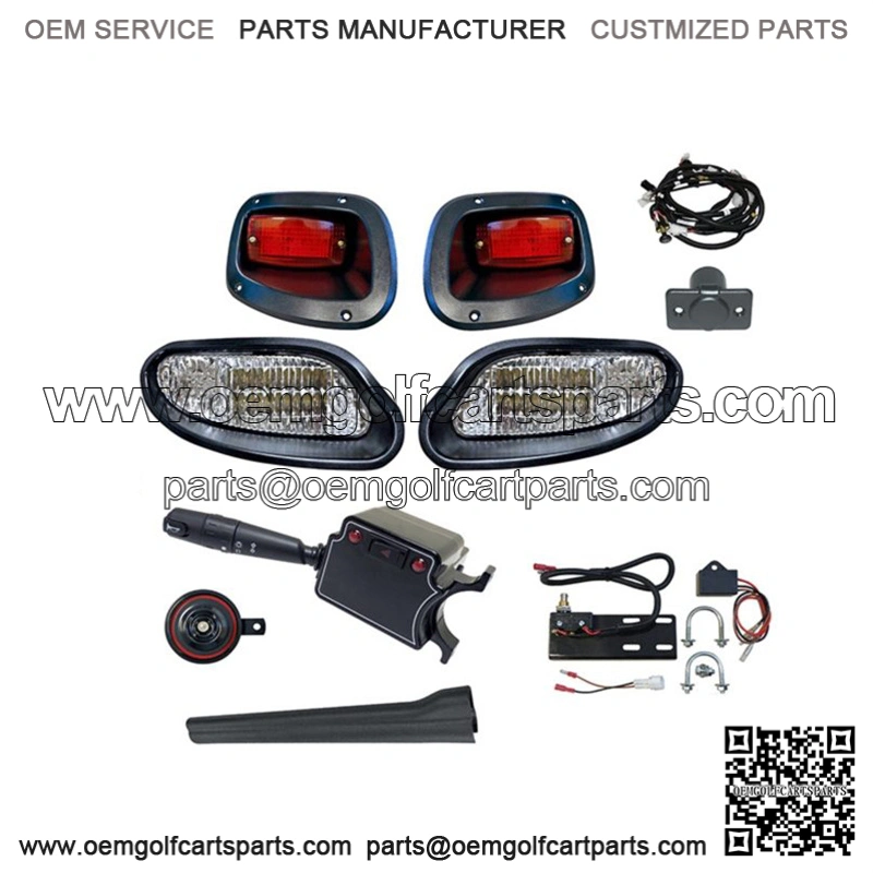 Kit Includes: LED Headlights, LED tail lights, wiring harness, installation template and instructions, turn signal switch, brake switch, horn, 12V outlet, and steering column cover.