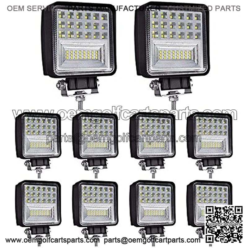 LED Light Pods, 4inch 126W Square LED Work Light, Spot & Flood Light Off Road Light, Led Fog Light Truck Light Driving Light Boat Light for Truck Pickup Jeep SUV ATV UTV Waterproof (10 Pack)