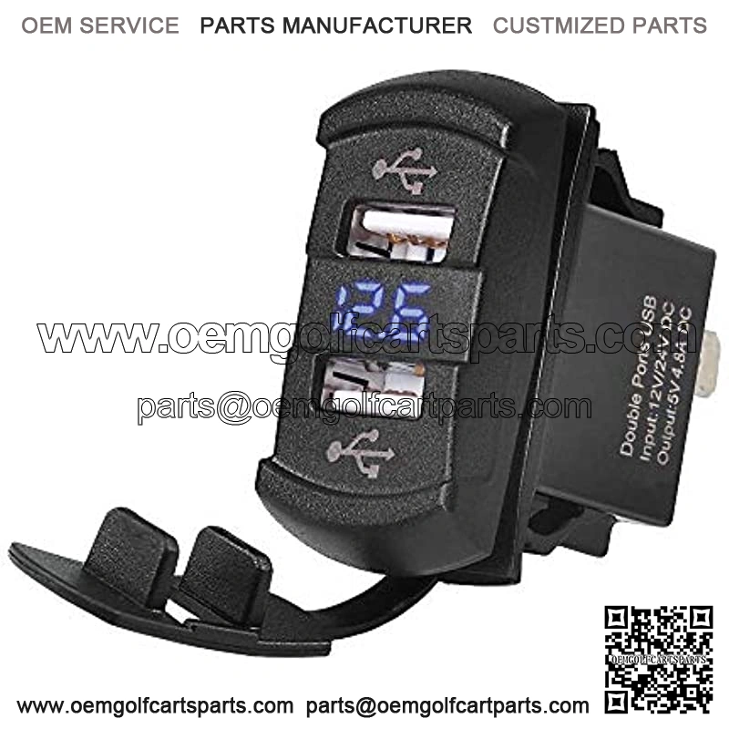 MGI SpeedWare Dual USB Charger with Voltmeter, 12-24v with LED Digital Display (Blue)