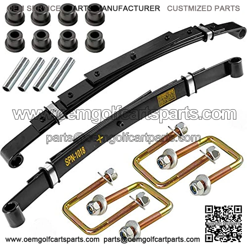 Fits all EZGO TXT electric (1994-up) models. Fits 1994-2009 Gas TXT and Medalist golf cart models. DOES NOT FIT 2010+ GAS Unlike many leaf spring kits on the market, our kit uses rubber bushings instead of polyurethane for a smoother, more squeak free ride. 4-leaf heavy duty design, More solid and durable, All replacement parts meet or exceed OEM specifications. Easy installation & 1 year warranty – Our kit includes all necessary mounting hardware making installation a breeze.