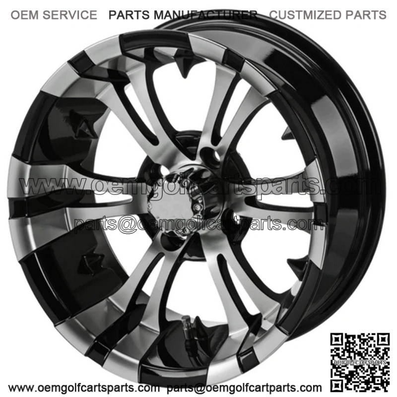 15″ Warlock Black & Machined Golf Cart Wheel Center Cap included Wheel Dimensions: 15X7 with 4×4 bolt pattern and 3+4 offset Lug Nuts sold separately