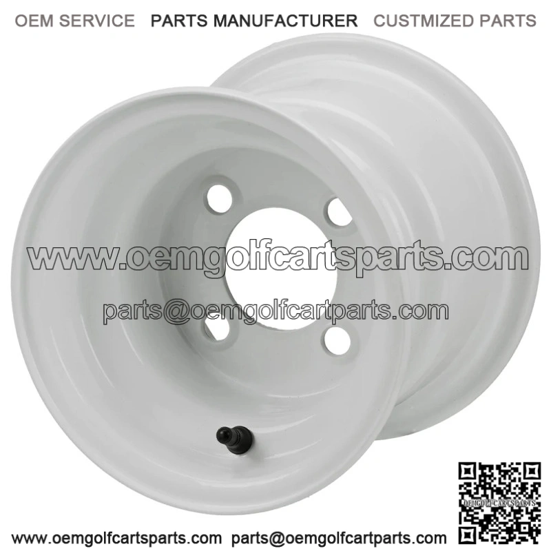8″ Offset White Steel Golf Cart Wheel Wheel Dimensions: 8X7 with 4×4 bolt pattern and 3+4 offset Lug Nuts Sold Separately