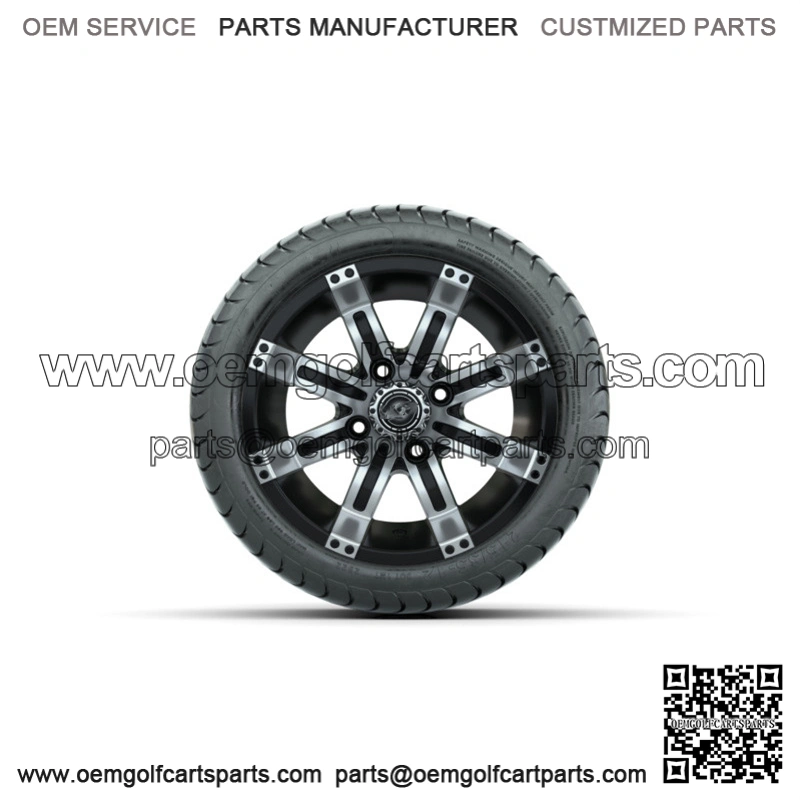 Set of 4 12″ Tempest Black/Machined Golf Cart Wheels & 205/30-12 (18″) Tires