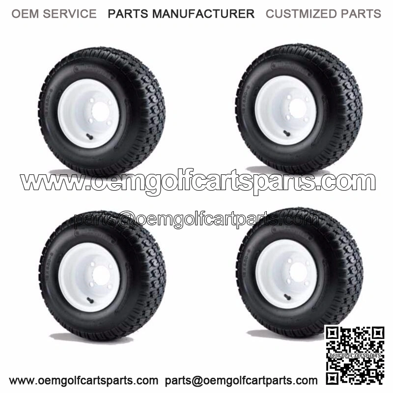 Set of 4 Golf Cart 18×8.50-8 6 Ply Traction Tires mounted on 8″ White Wheels