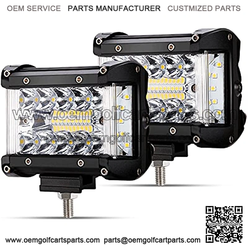 ??Super Brightness( 8000LM)??The 60W LED Light pods consist of 40pcs dual-sided and middle flood beam,20pcs spot light LEDs. 60 premium chips emit 6000K cool light, providing 8000 lumen to ensure objects are clearly visible and prevent potential threats, providing you with an unparalleled driving experience. Unique design in the auxiliary work light, allowing you to clearly see left, right and front.