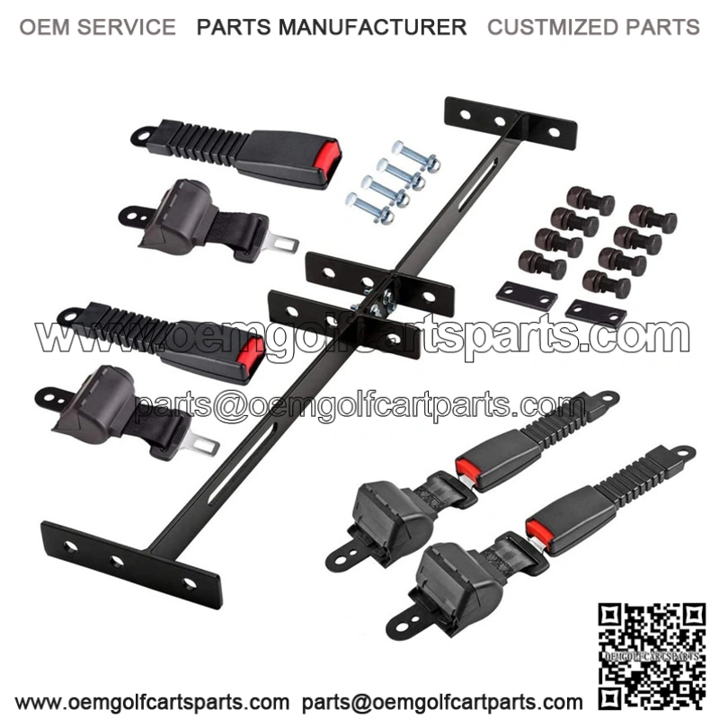 Universal Golf Cart 4 passenger Seat Belts and Bracket for EZGO / Yamaha / Club Car, bracket size: 35″ x 6.9″, retractable belt length: 42″.