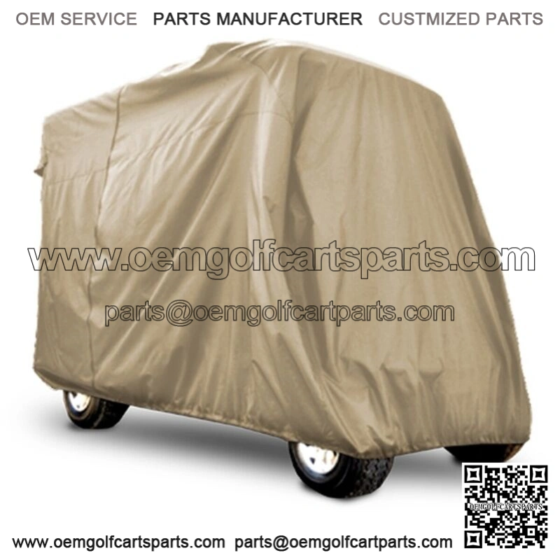 Here is a 116″ top golf cart cover made for any six passenger carts with an 116″ top canopy. It features weather resistant nylon with zippered entry ventilation and a strong elastic cord sewn into the bottom for a snug fit. Color: Tan